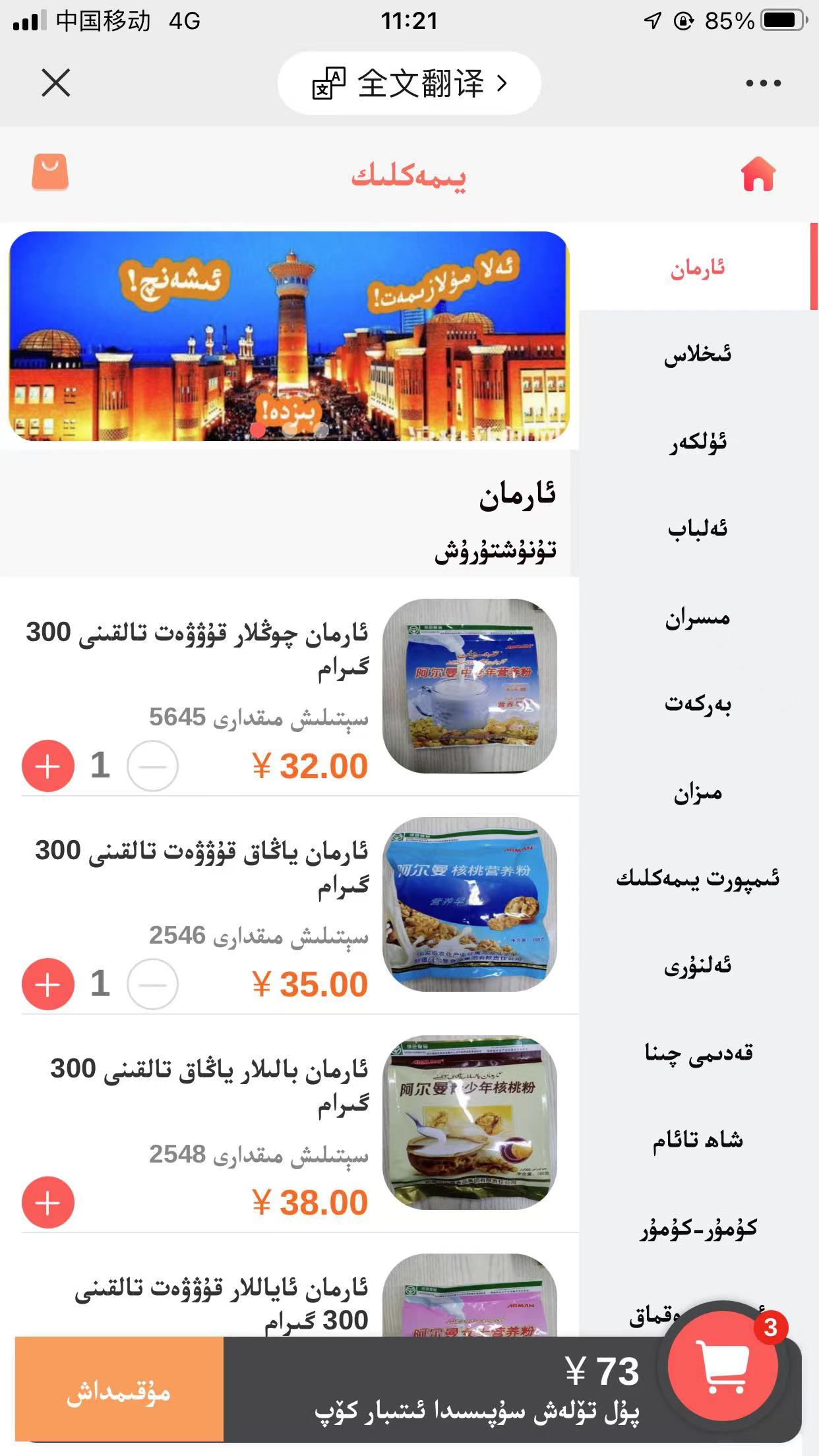 يىمەك-ئىچمەك مۇلازىمىتى،پارچە توپ سېتىش، دەرىسخانا سۇپىسى ياساش.